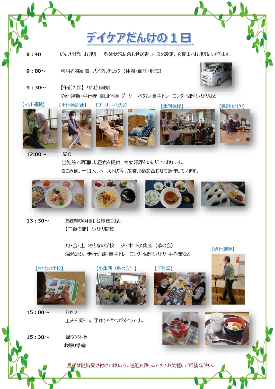 ・利用者様に心地よい環境つくりを推進し、ご自宅での生活がより良いも のになるようなリハビリテーションを提供します